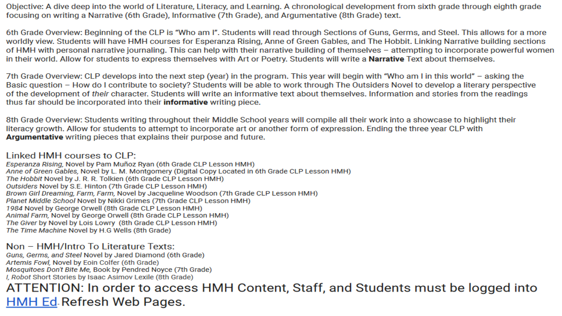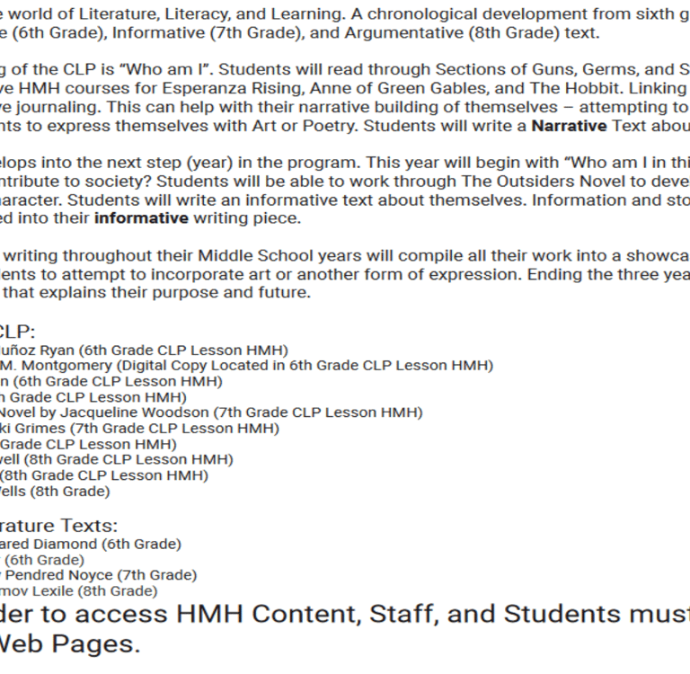 The Heck Company's Middle School Curriculum.